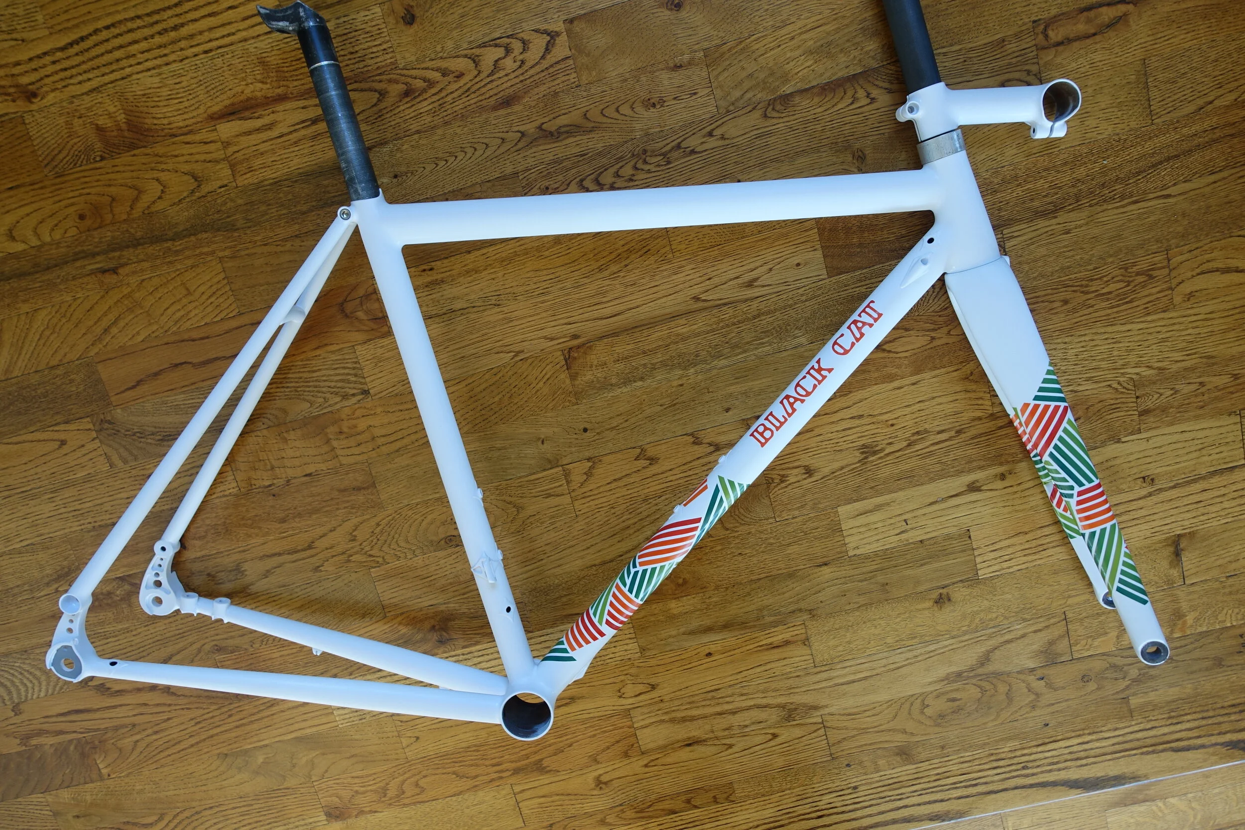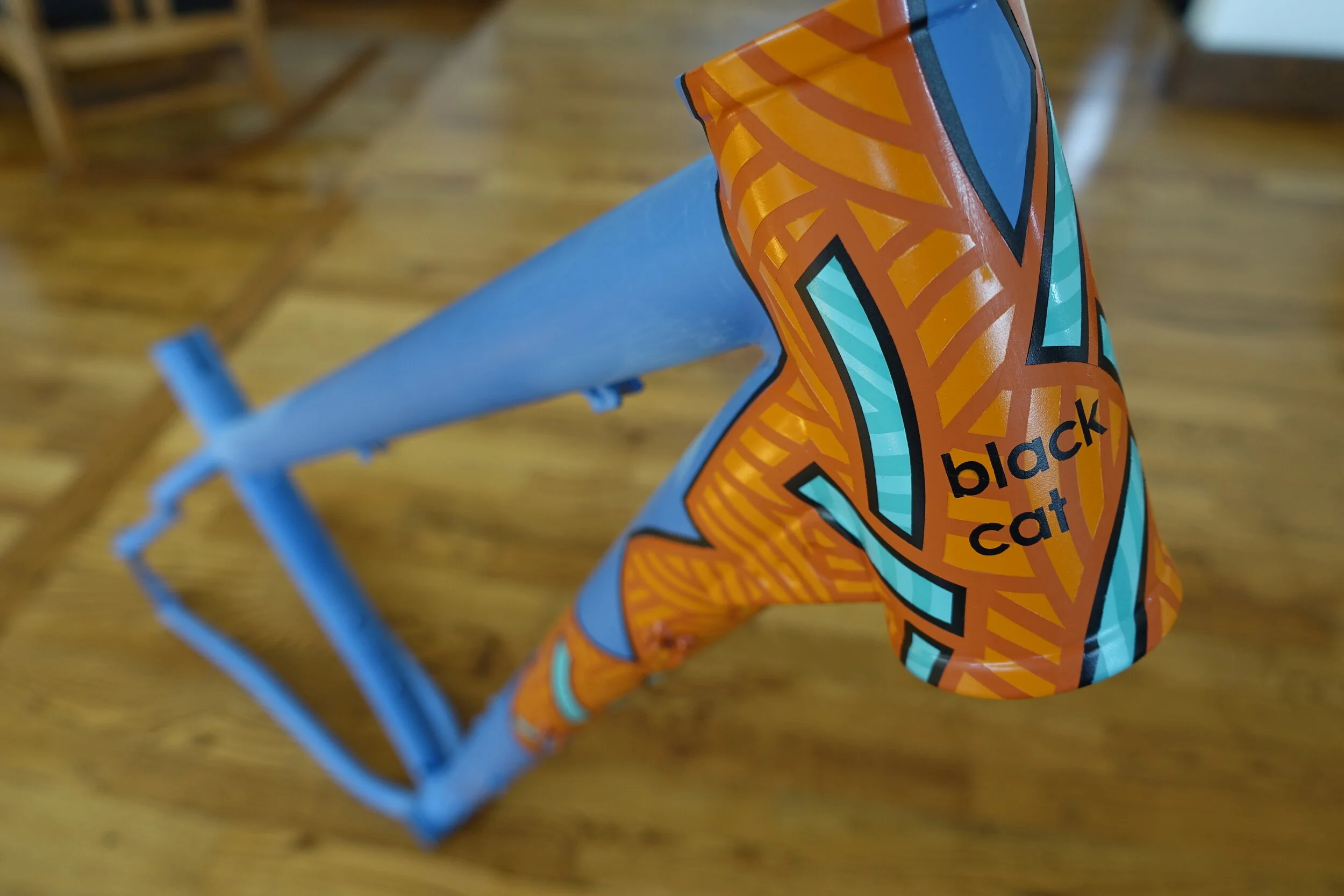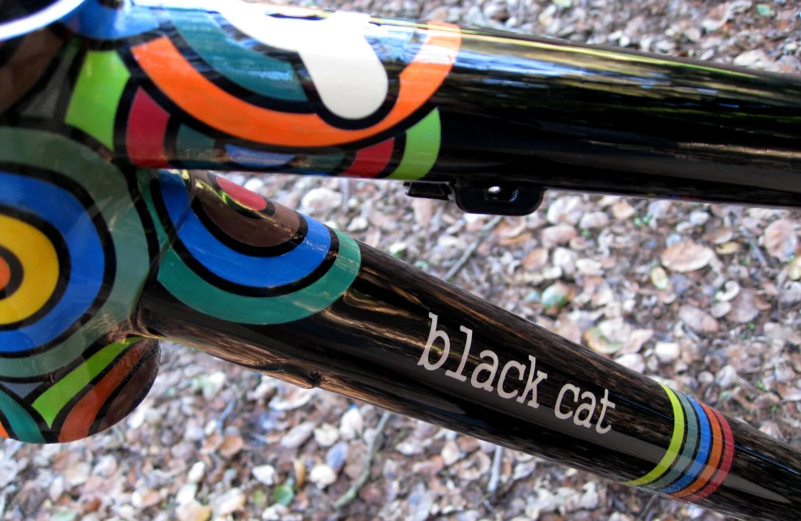 Original paint design and production is done in-house as a single, continuous thread, by the same two hands that construct the frame. Whether you want an intricate expression or just a one-off typeface, each Black Cat leaves the shop as an individual.